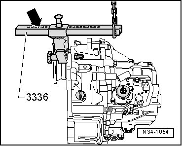 - Lift the transmission using a workshop crane and the transmission support jig (3336).