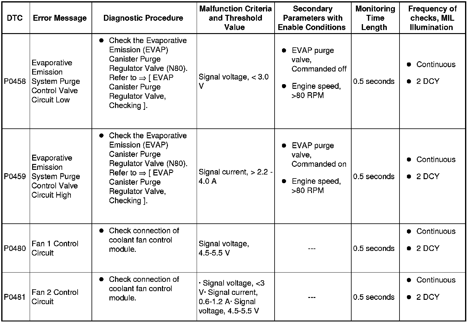 A L L Diagnostic Trouble Codes ( DTC )