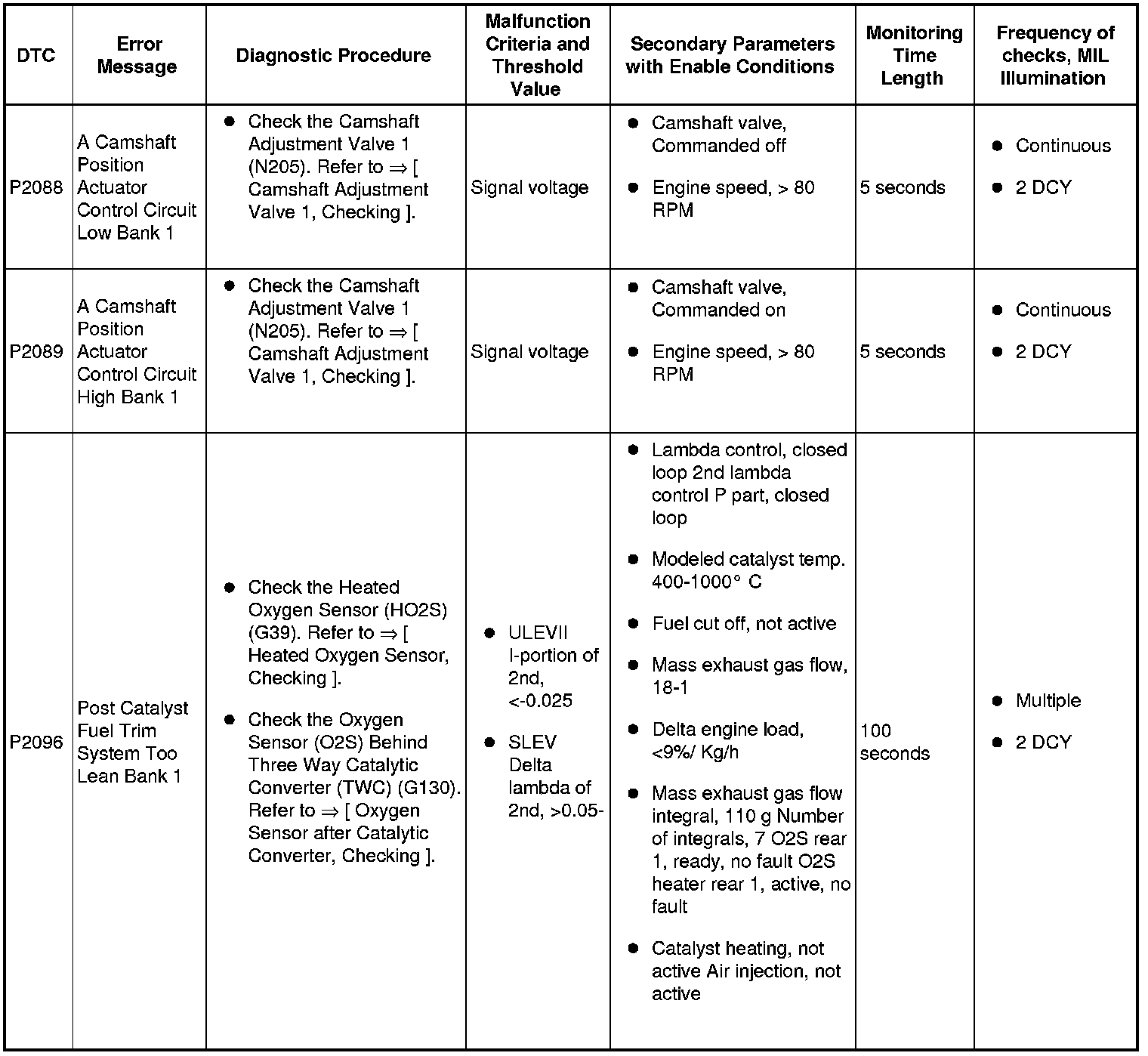 For additional monitor strategy information. Refer to the => Bosch Motronic MED 7.1 OBD System Strategy document.