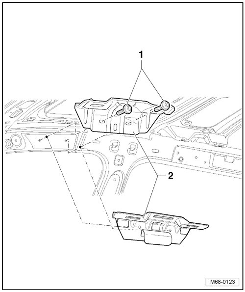 - Remove two bolts - 1 - (2 Nm) and remove bracket - 2 -.