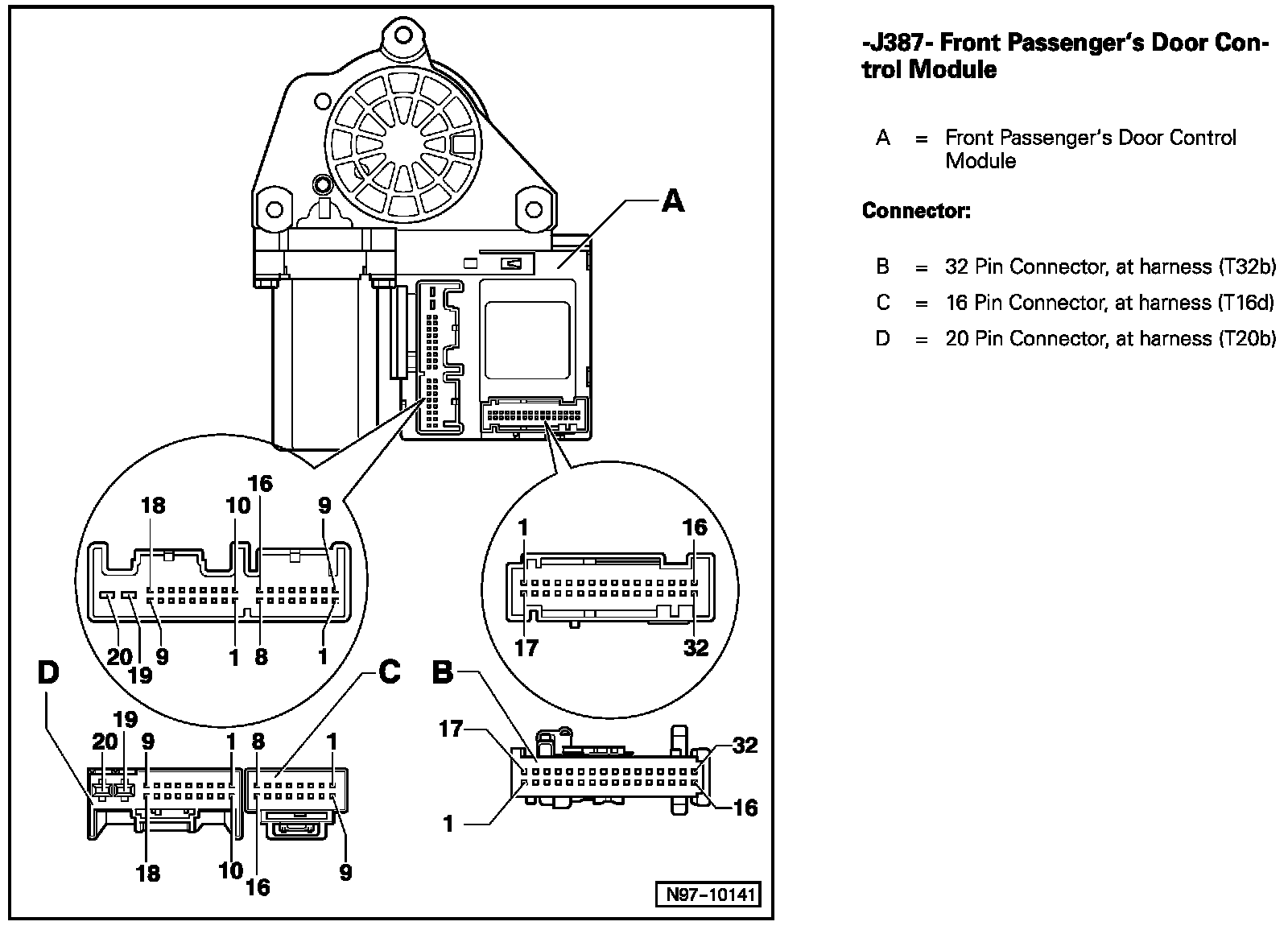 Front Passenger's Door Control Module J387 (Part 2):