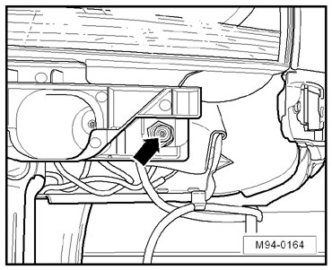 - Loosen the screw - arrow - on the bottom of the headlamp on the right side.