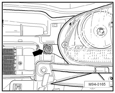 - Turn the adjusting bushing - arrow - on the front of the headlamp to adjust the headlamp so that it is flush with the vehicle body.