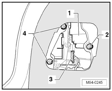 - Remove the nuts - 2 - and - 4 - from the tail lamp assembly - 1 -.