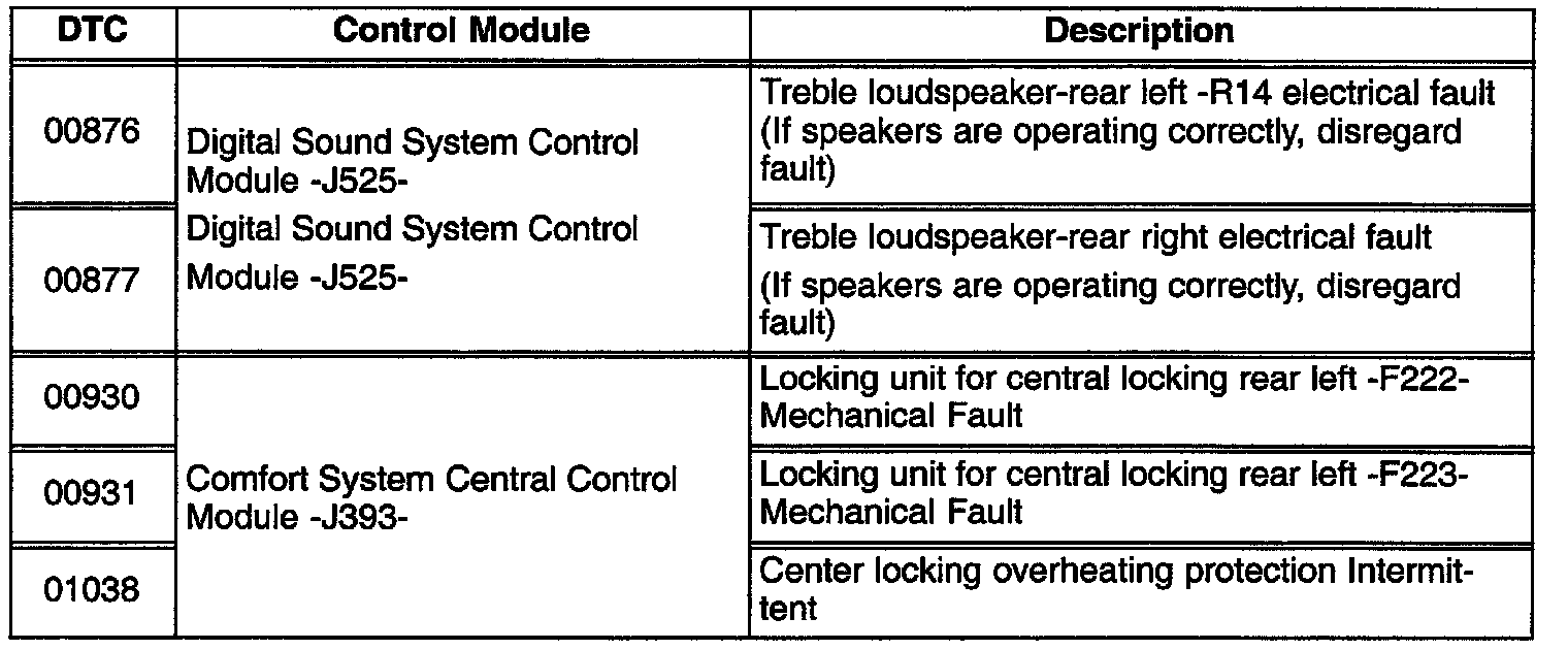 If any of the DTC(s) shown exist during fault memory interrogation.