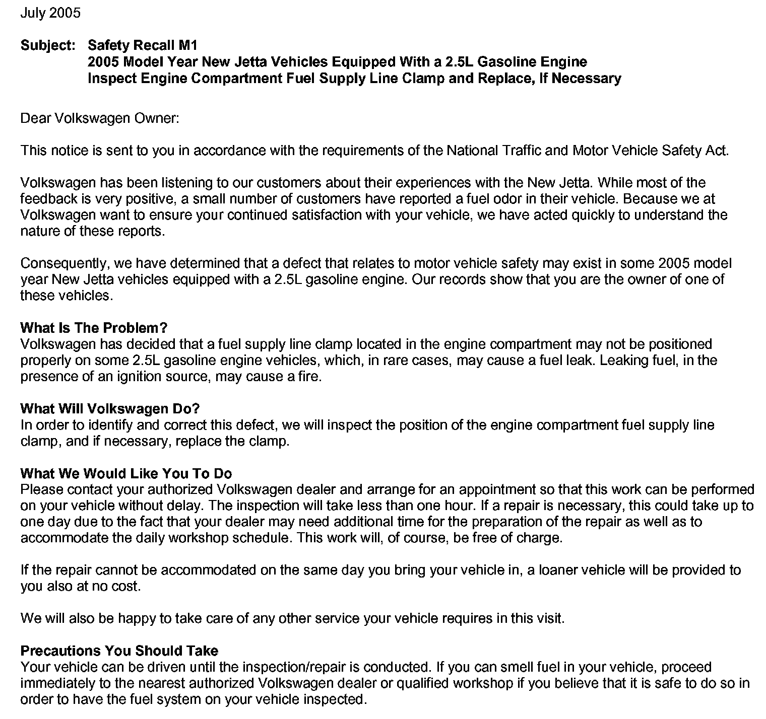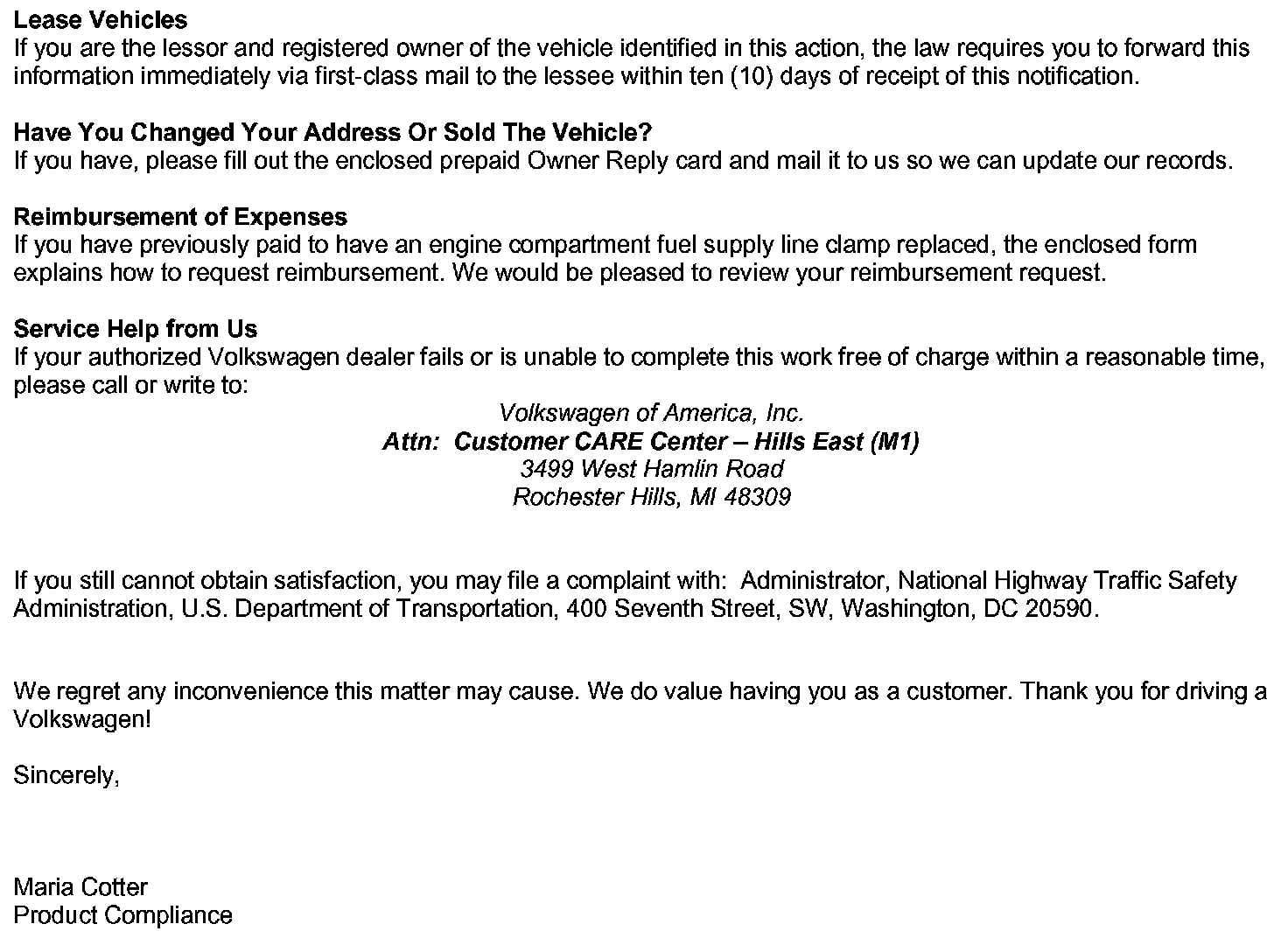Recall - Fuel Supply Line Clamp Inspection/Replacement