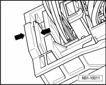 - Then swing mounting bracket up in direction of - arrow - and disconnect harness connector.
