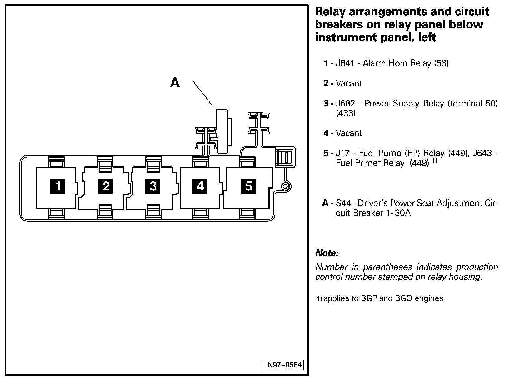 Relay Arrangements And Circuit Breakers On Relay Panel Below Instrument Panel, Left: