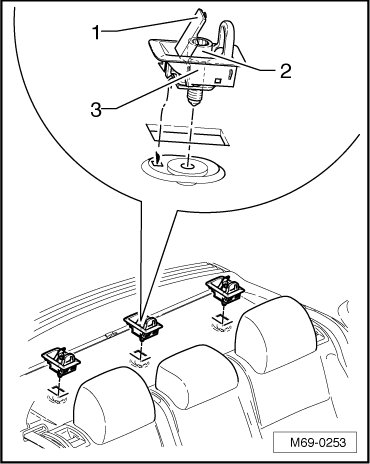- Remove child seat anchor - 3 - from rear shelf.