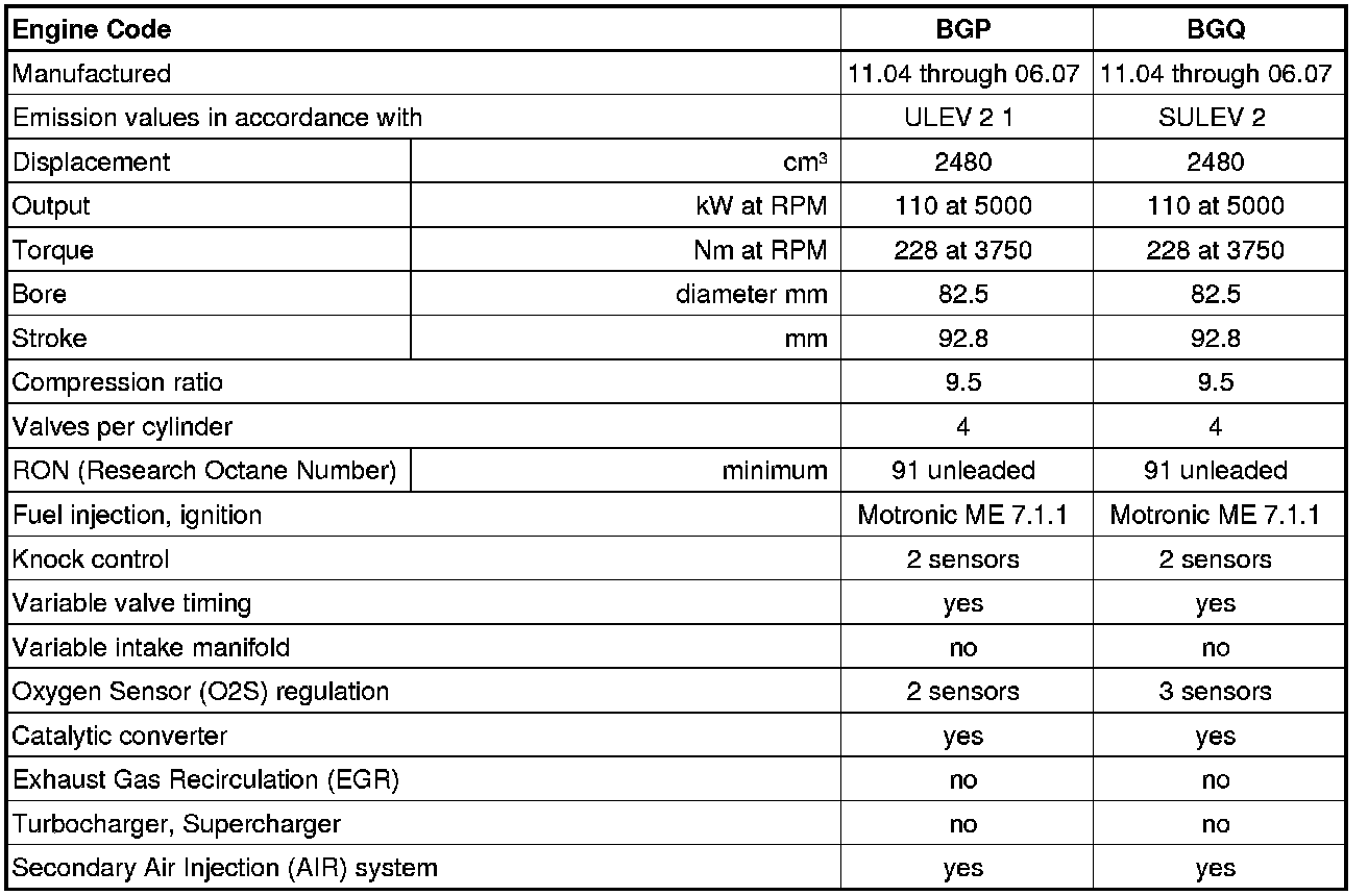 Jetta Sedan (1K2) L5-2.5L (BGP)