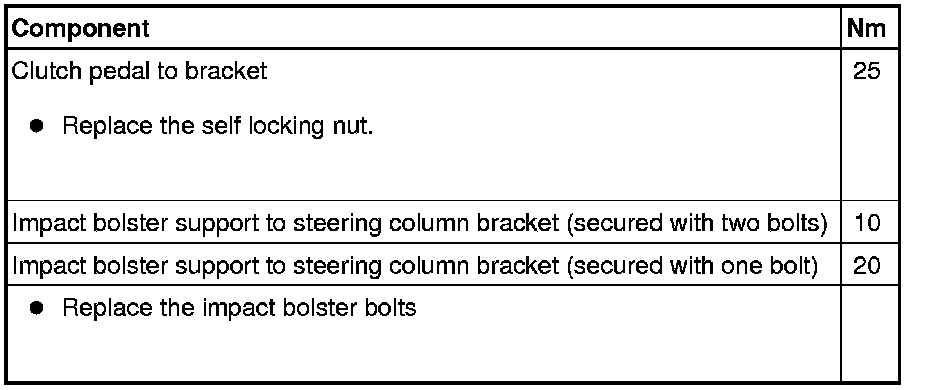 - Press the clutch pedal slightly, push the bolt through and tighten the self locking nut to specification, refer to.