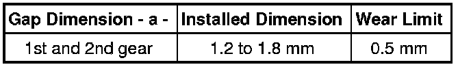 - Install the synchronizer ring, outer race and inner race onto taper of selector gear and then measure the gap dimension - a - with a feeler gauge.