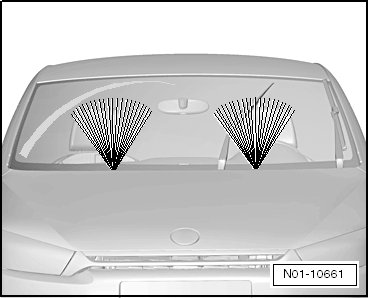 - Adjust nozzle with adjustment tool (T10127) so that fluid sprays onto upper third of rear window, as shown.