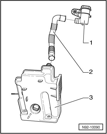 1. Filler tube for tank for windshield washer system and headlamp cleaning system, removing and installing, refer to=> [ Filler Tube ] Filler Tube.