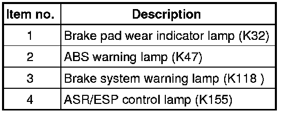 ABS Warning Lamp (K47), Brake System Warning Lamp (K118) and ASR/ESP Control Lamp (K155)