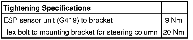 When ESP sensor unit (G419) is replaced, zero adjustment of transverse acceleration sensor (G200 ) and of rotation rate sensor (G202) must be performed.