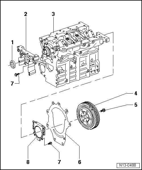 • Seal for crankshaft - ribbed belt side, replacing => [ Crankshaft Seal, Belt Pulley Side ] Service and Repair.