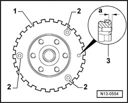 - Check dowel pin projection - a - with a depth gauge when sender wheel - 1 - is removed.