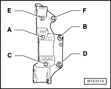 6. Tighten bolt - F - to 45 Nm