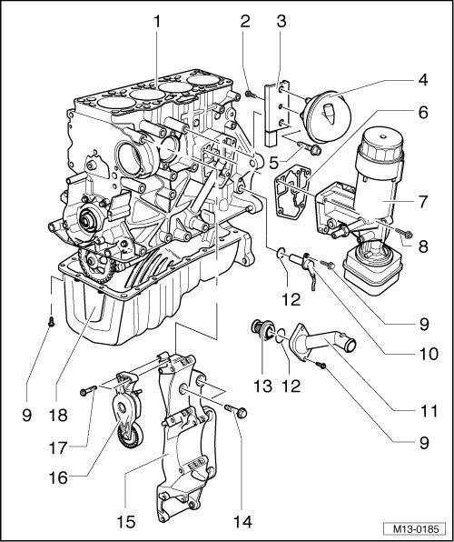 - Place accessory bracket on cylinder block (observe fitting sleeve between bracket and cylinder block).