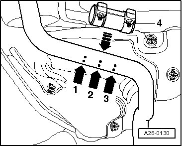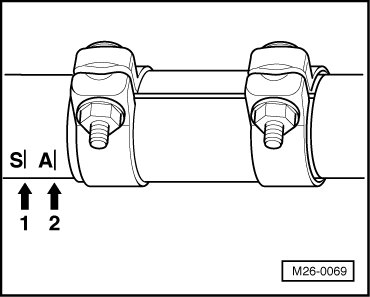 - When installing, position the repair double clamp - 4 - on the side markings - arrows 1 and 3 -.
