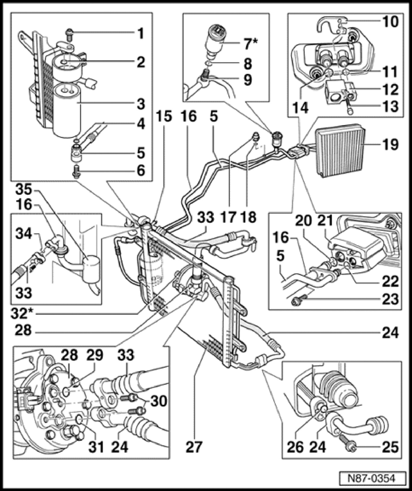 - Except where indicated with * all system components illustrated must only be serviced or replaced after discharging refrigerant system.