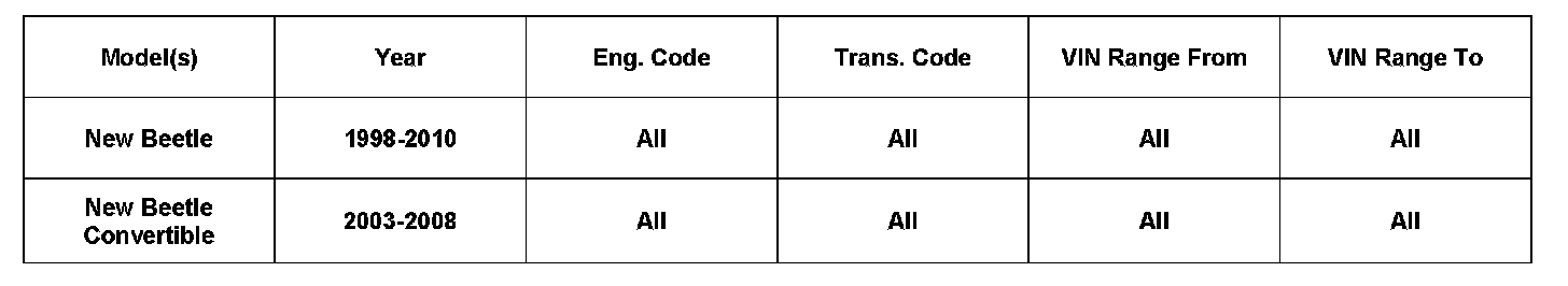 New Beetle may require a factory status instrument cluster when the vehicle receives a new identity, or more than one immobilizer component is replaced.