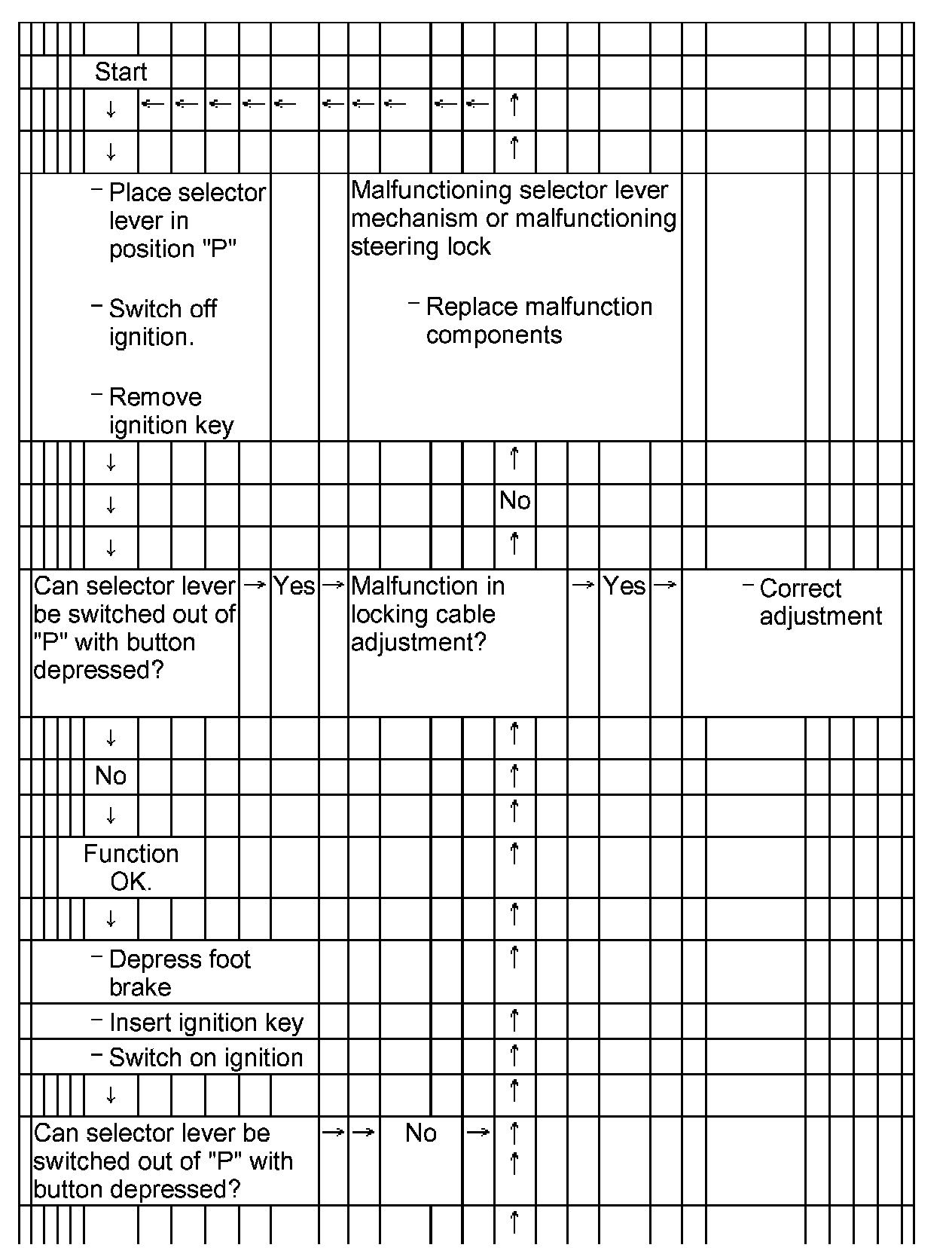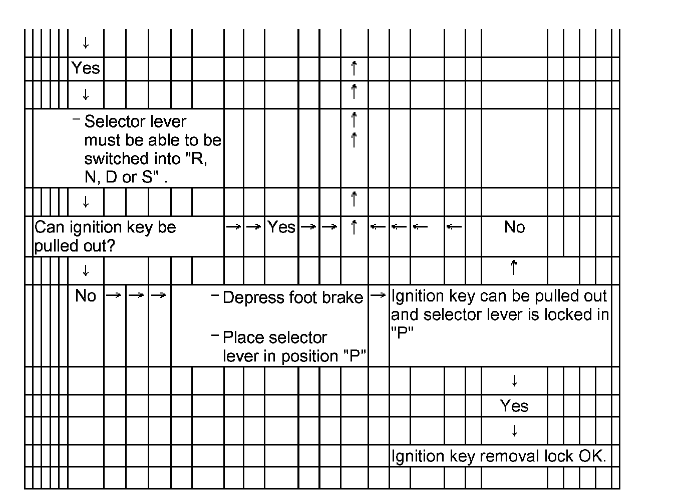 Ignition key removal lock, checking function, 02E, 6 Speed Direct Shift A/T