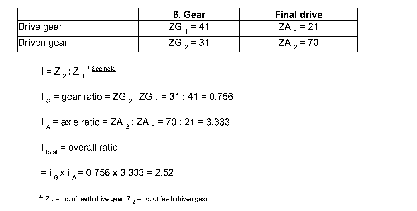 Calculation of transmission ratios "i", 02E, 6 Speed Direct Shift A/T