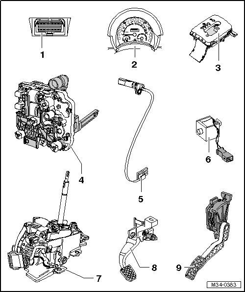 Transmission Input Speed (RPM) Sensor (G182) with Clutch Oil Temperature Sensor (G509) - A - is bolted on under the Direct Shift Gearbox (DSG) Mechatronic (J743) on transmission housing.