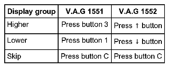 NOTE: Some of the display groups are only relevant for vehicles with the corresponding equipment.