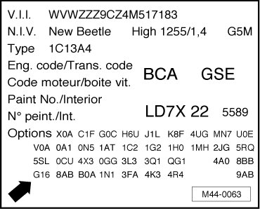 Example of a vehicle data sticker