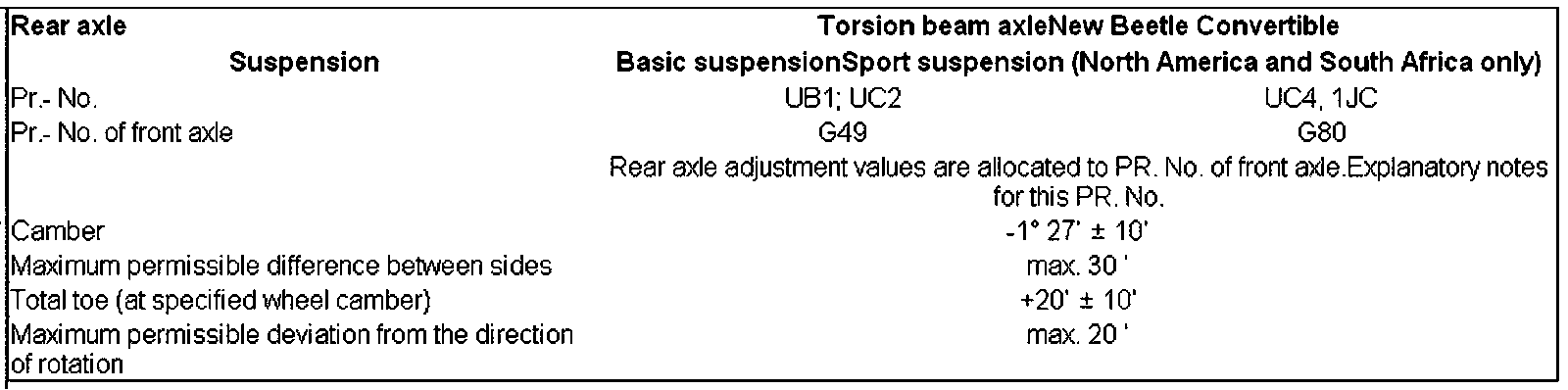 Camber is not adjustable. Only slight corrections are possible by moving the subframe. Adjustment range approx. 10' to 15'