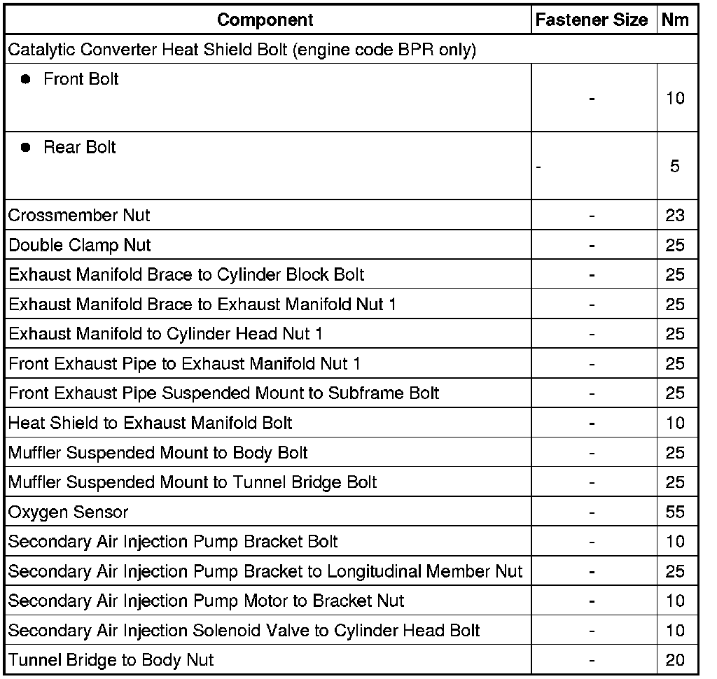 Secondary Air Injection (AIR) Connecting Pipe Bolt Tightening Sequence and Specification