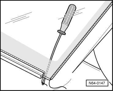 - Push cutting cord end through adhesive sealant into vehicle interior using awl (from (V.A.G 1474 A )).