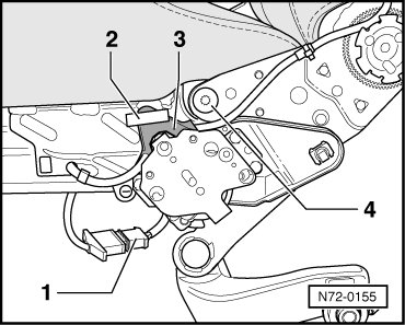 - Pry out clip - 2 - and remove airbag wiring - 3 -.
