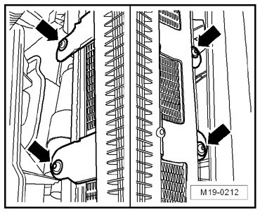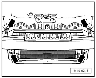 - Remove the bolts - arrows - from the radiator.