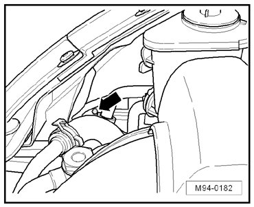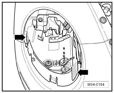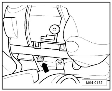 - Push down the locking spring - arrow - and remove the headlamp forward out of the bracket.