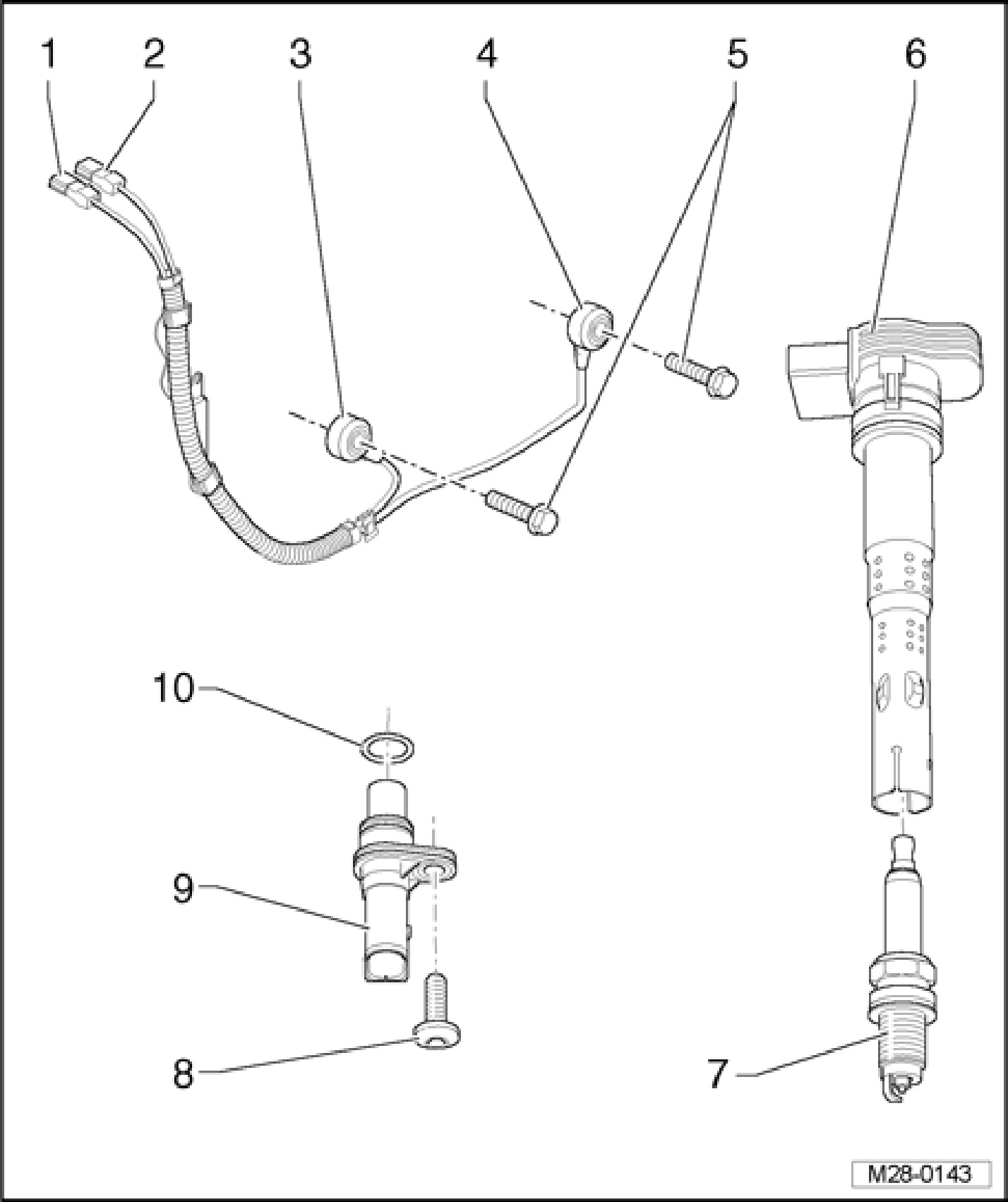 6 - Ignition coil with power output stage N70, N127, N291, N292, N323