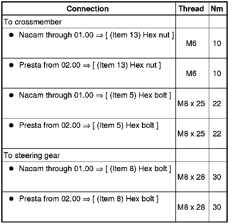 Steering Column: Specifications