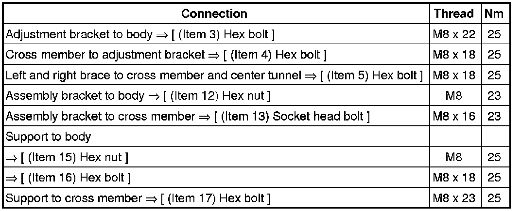Tightening Specifications