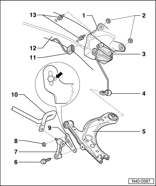 Tightly coupling rod bolt in area of marking - arrow - of bracket -=> [ (Item 9) Bracket ] -