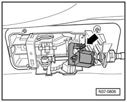 Component location: Shift Lock Solenoid is located in the shift mechanism - arrow -.