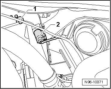 - Disengage retaining lug - 1 - and move the Front Hood Switch in the longitudinal holes so that it can be removed.