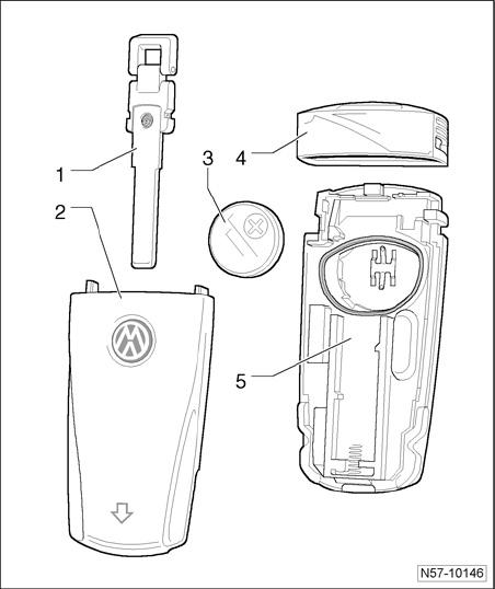- Disengage retainers of remote control key - upper section - 2 - on remote control key - 1 -.