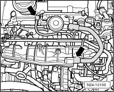 Disconnect the vacuum lines - arrows - from the intake manifold and from cylinder head cover.