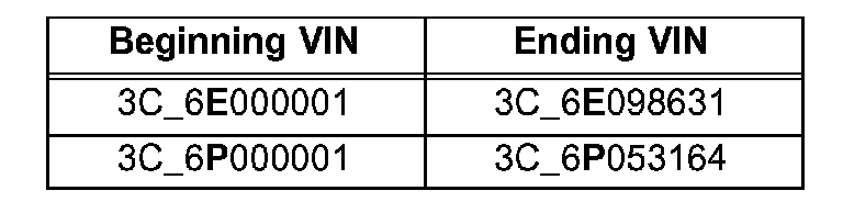 Applies to vehicles within the following VIN ranges:
