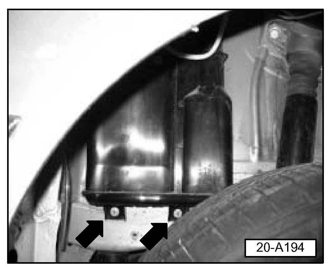 Remove canister assembly from inner fender by pulling assembly downwards and out after fastener removal.