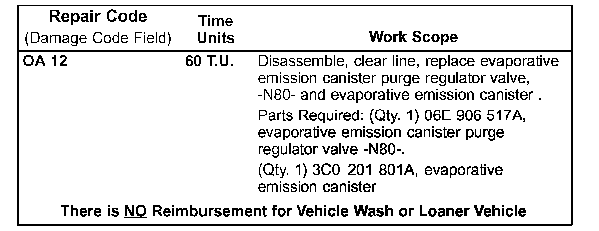 - Install new evaporative emission canister purge regulator valve -N80-, Part No: 06E 906 517 A, in reverse order of removal.