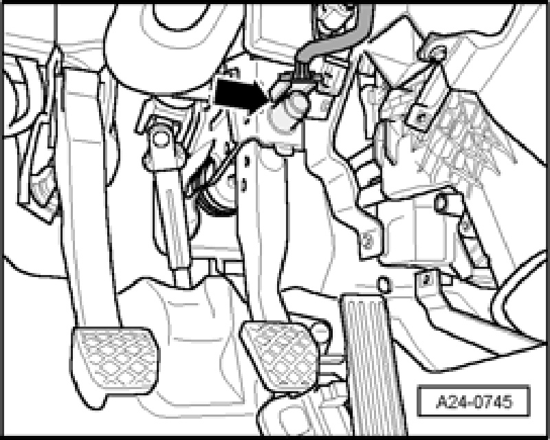 - Corresponding fuses on fuse holder in instrument panel, left side, for Brake Light Switch -F- must be OK.